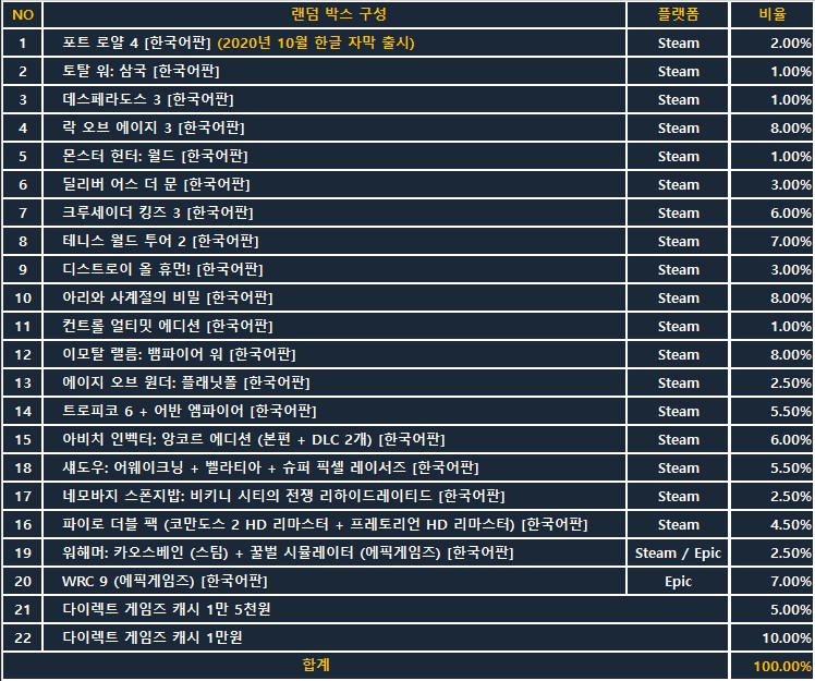 | [~2020년 7월 10일] 다이렉트 게임즈 게임 랜덤 박스 판매 (0) | 2020.06.25 |