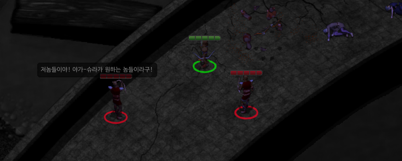 시작 위치에서 왼쪽 아래에 다리를 건너려 하면 야가-슈라 병사들이 보일 것이다.
