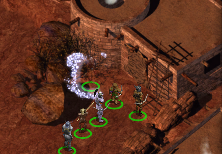 낮 시간에 와우킨의 사원 왼쪽에는 궁수대 용병들이 연습하고 있는 것을 볼 수 있다.