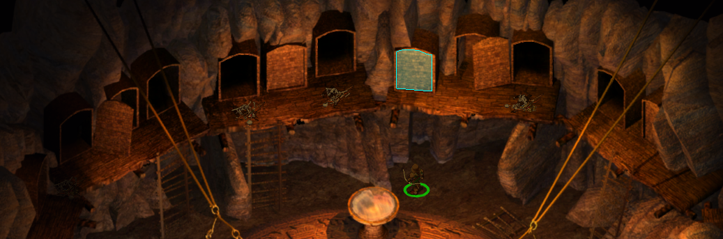 동굴의 뒤쪽에는 사다리가 있고 수 많은 문들이 보일 것이다.