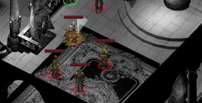 나아가다 보면 함정이 깔려 있으니 주의해야 한다. 그리고 곳곳에 경비병들이 배치되어 있는데 마주치면 전투를 벌여야 할 것이다.