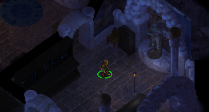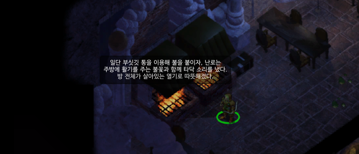 중앙 통로 오른쪽 방에서 얻은 부싯깃통을 이용해 화로에 불을 붙일 수 있다. (지도 7번 표시)