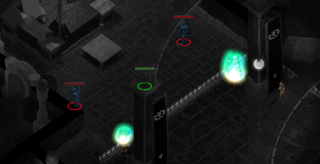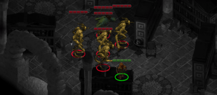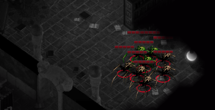 방으로 들어서면 조각상들이 있고 악령들이 공격해 온다.
