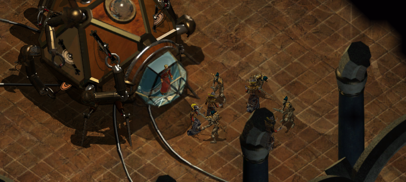 기계 장치 안에 있는 카스톤이라는 인물이 소환하여 싸움을 붙인 것으로 보인다.