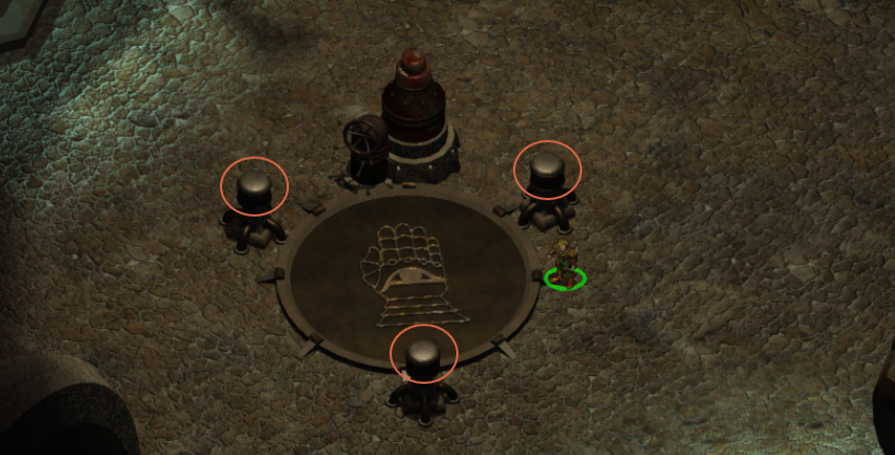 해당 위치에는 제단이 하나 있고 각 종 골렘들이 기다리고 있다.