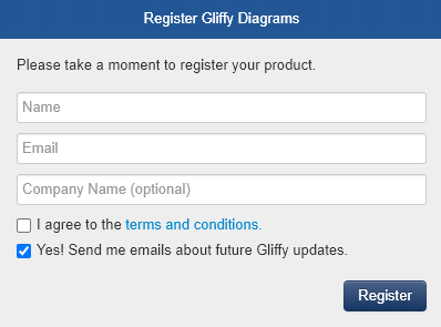 Gliffy Diagrams를 실행시켜보면 다음과 같이 최초 등록 창이 뜬다.