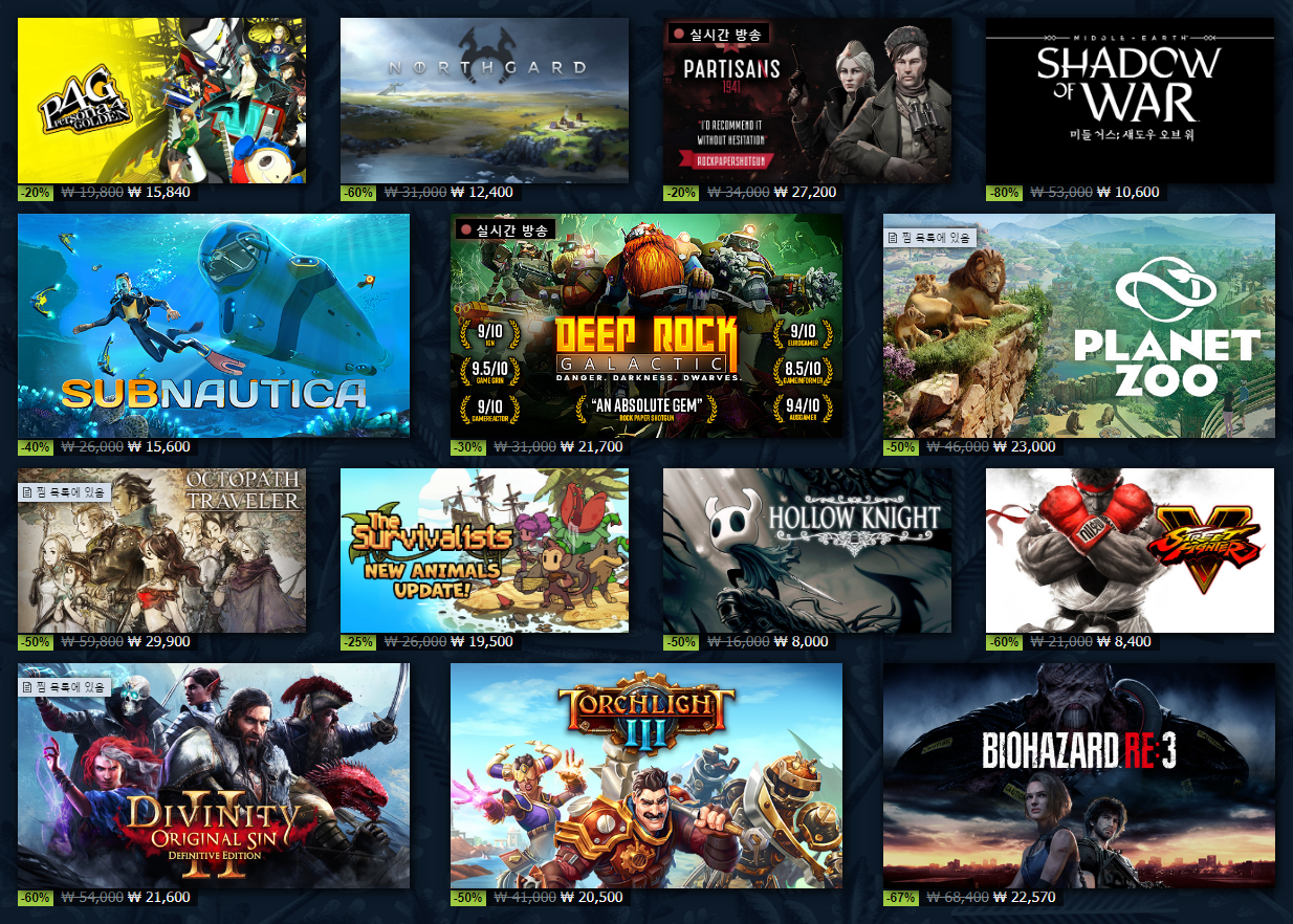 | [~2020년 12월 1일] 스팀 가을 할인 프로모션 (0) | 2020.11.27 |