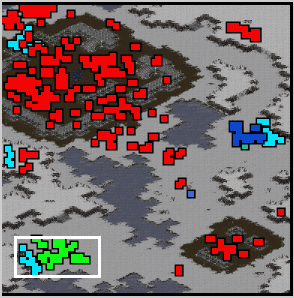 적 본진 공격시 본진 뒤쪽을 공격할 수 있는 샛길을 이용해서 공격하면 편리하다.