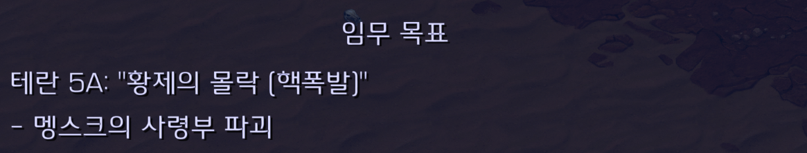 가장 우측 상단에 있는 노란색 건물인 멩스크의 사령부를 파괴하면 미션이 끝난다.