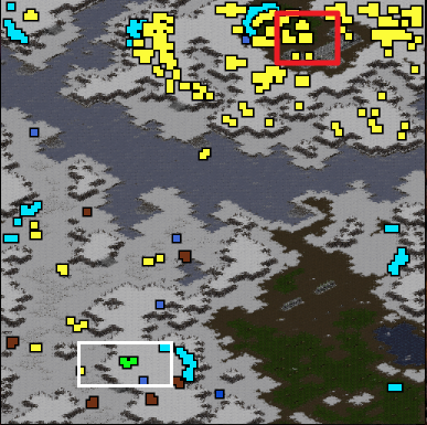 지도에 갈색으로 표시된 부분에는 저그 영웅 유닛들이 있으니 SCV로 접근하여 우리편으로 만들자.
