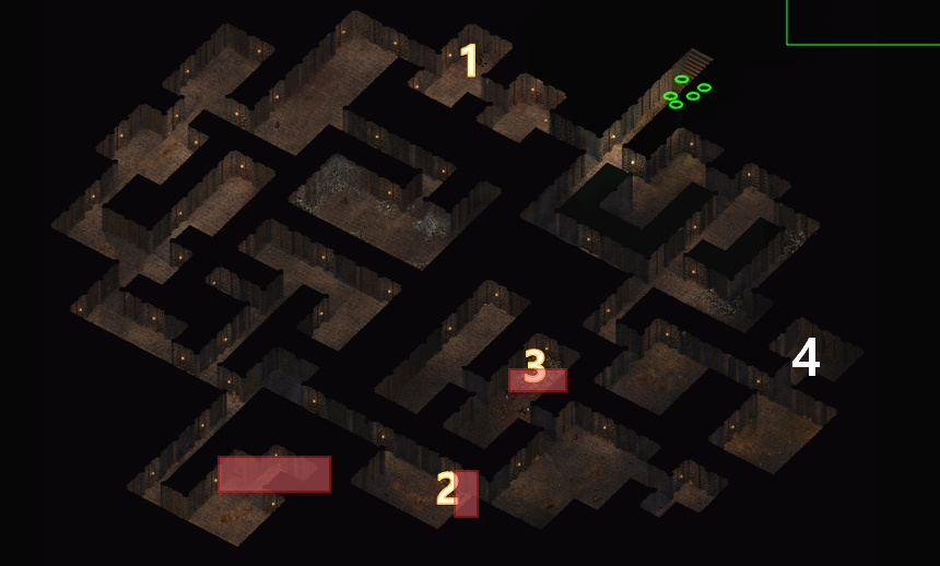 얼캐스터 던전은 다음과 같으며 위의 숫자 위치에서 아이템들을 얻을 수 있다.