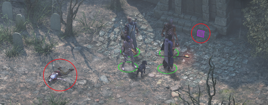 묘지 우측의 시체와 숨겨진 공간에서 아이템을 얻어가자.