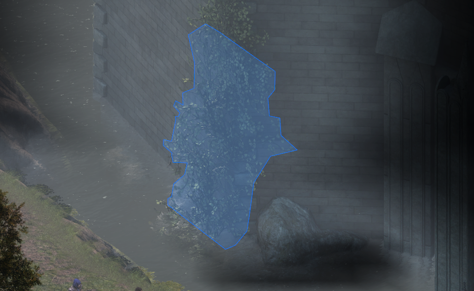 시작 위치에서 오른쪽으로 쭉 가다보면 강가의 돌을 건너 하수구에 접근할 수 있다.