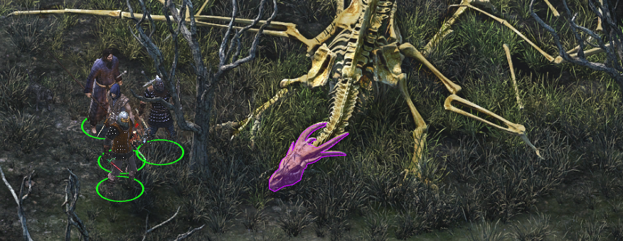 도적 야영지에서 조금만 내려가면 야수의 뼈를 발견할 수 있다.