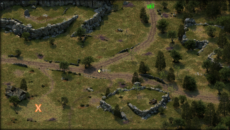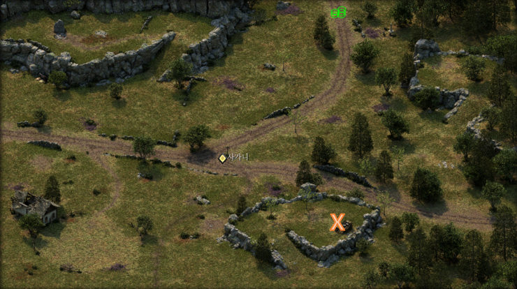 우선 우드엔드 대평원으로 가서 지도상 X표시 지점에서 도적단을 찾자.