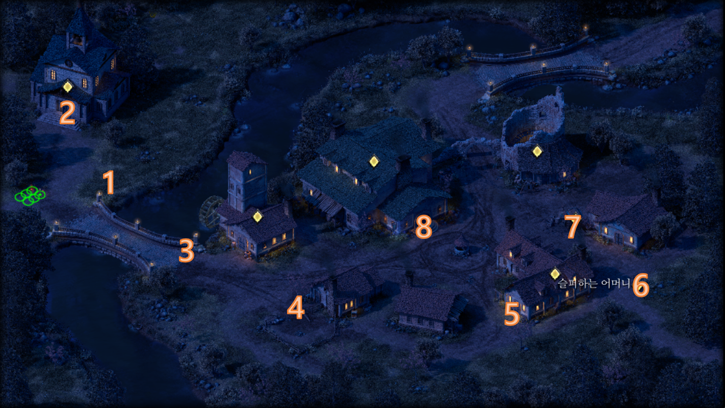 맵의 오른쪽에 슬퍼하는 어머니가 있다.