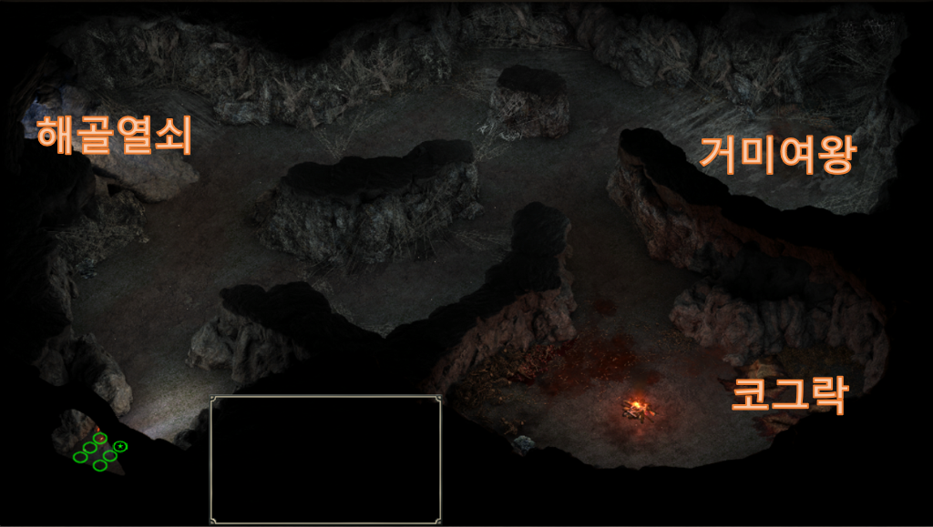 맵의 아래쪽에 거미들이 있고 지나가보면 동굴이 하나 있다. 들어가보자.