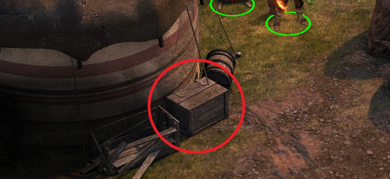 지휘 텐트 오른쪽에는 한 무리의 용병단이 있고 상자를 하나 찾을 수 있다.