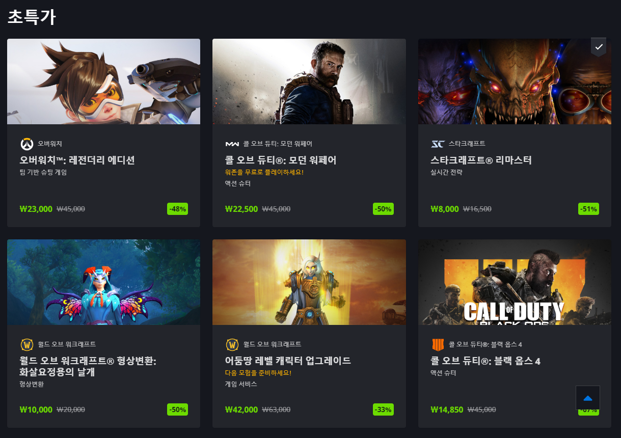 스타크래프트,스타크래프트2의 경우 만원 밑의 가격으로 판매하고 있으니 구매 계획이 있다면 구매하도록 하자.
