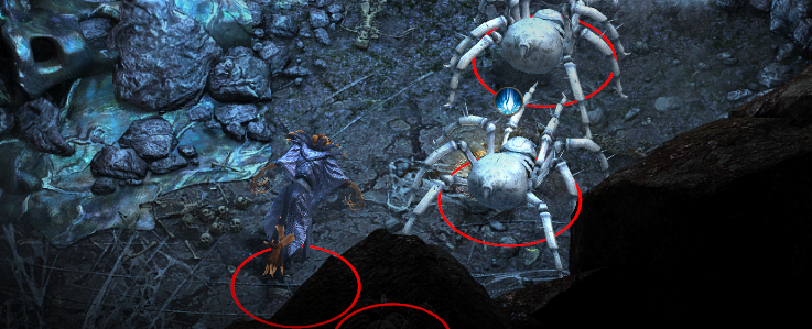 해당 지역의 남쪽 부근에는 미친 비스락과 거미들이 공격해 온다.