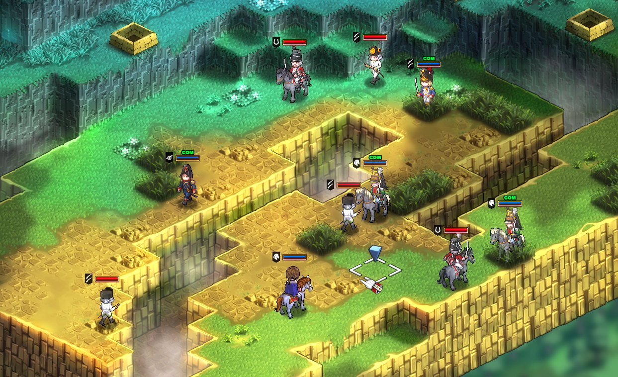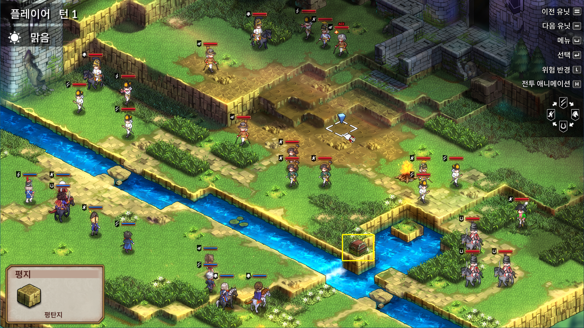 4턴이 되면 적 지원군이 도착하는데 위쪽에 경기병 3명과 아래쪽과 우측에 중기병 1명씩 도착한다.