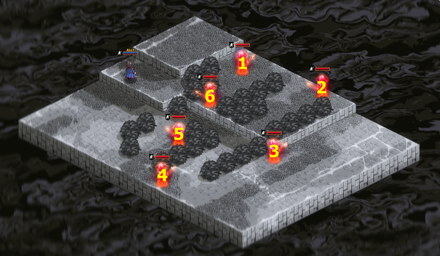 위의 지도상 숫자 순서대로 적을 처리하면 쉽게 클리어할 수 있다.