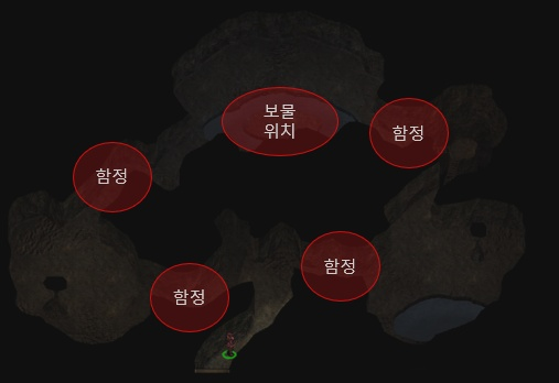 동굴 안에는 위와 같은 구조로 되어 있으며 적은 살덩이 골렘 (일반무기 면역) 3마리가 있으니 주의하자.