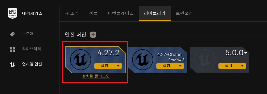 에픽 게임즈를 설치하였다면 언리얼 엔진을 추가할 수 있는데