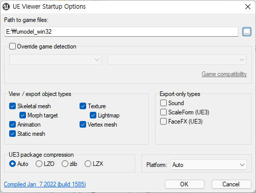 운영체제가 32bit인 경우 umodel.exe 파일을 실행하고
