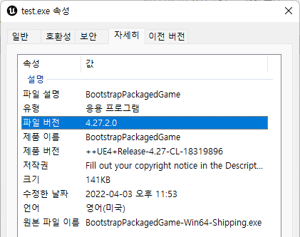 실행 파일의 속성에 들어가서 자세히 탭에 가보면 파일 버전이 있다.