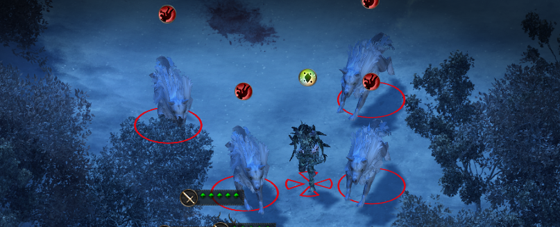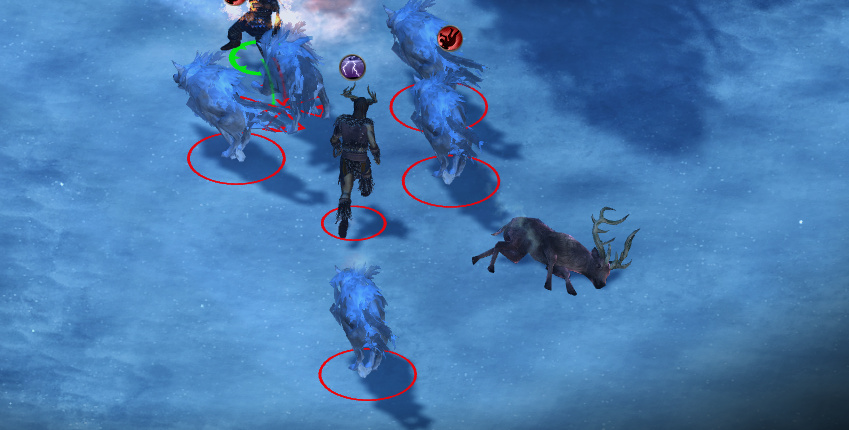 지도 상 남쪽에 늑대들과 드루이드가 있다.