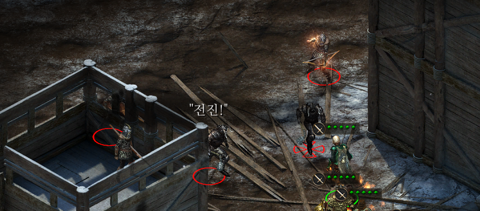 ※ 넘어가는 캐릭터가 은신 능력이 10 이상이라면 적들 모르게 서문을 열어 잠입할 수 있다.