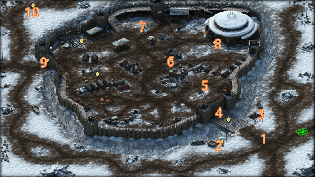 요새 위쪽에 지휘소 텐트를 발견할 수 있다.