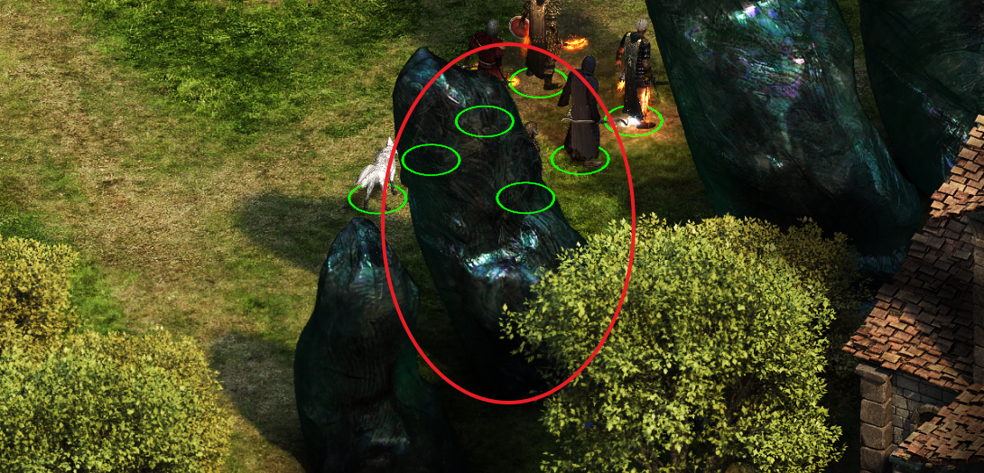 녹석 지팡이 (영혼 결합됨 | 결합 재료: 마법사, 드루이드, 수도승 | 속도: 느림 | 범위: 1.75m | 방해: 1.75m | 대미지: 18-26 부수기 대미지 | 무기 공격 범위+1.8 | 치명타시 자연의표식 발동 (전투 당 1) 부여 | 명중률+8, 대미지+30%) |