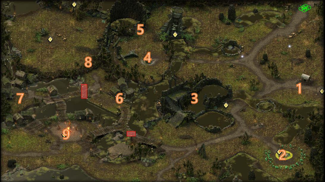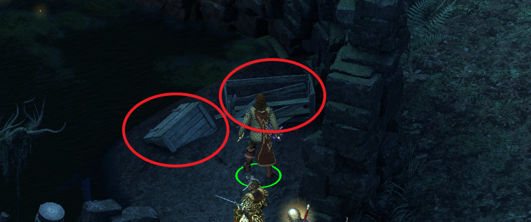 지도 상 중앙 부근에서 이교도 무리를 만날 수 있고 처치 후 상자 하나를 발견할 수 있다.