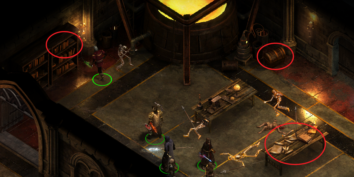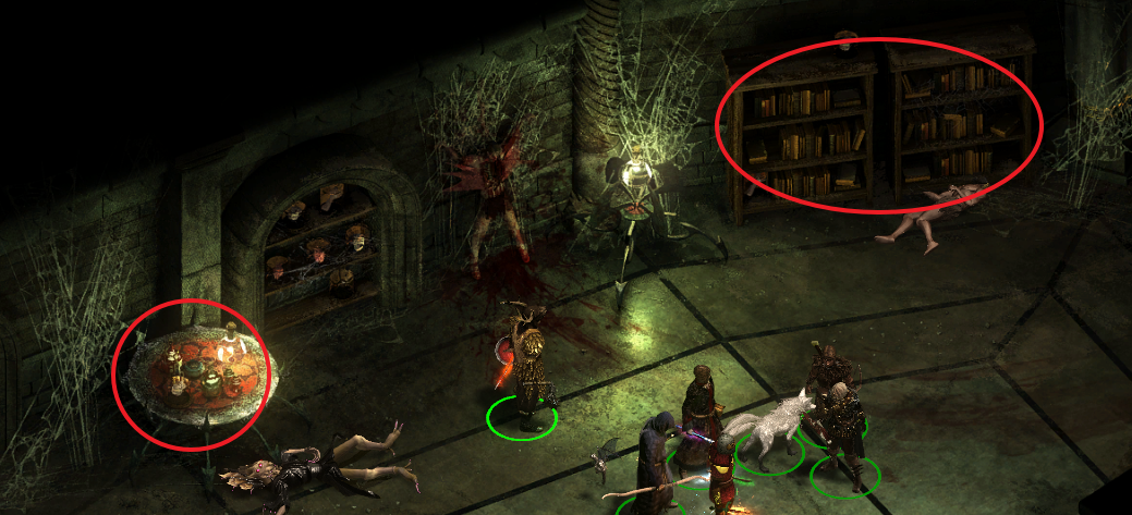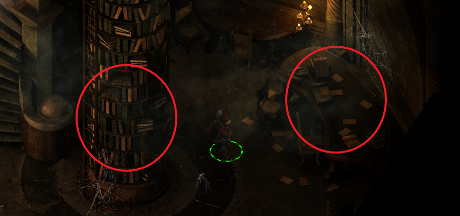 적 처치 후 상자 및 탁자와 책장에서 아이템을 얻을 수 있다.