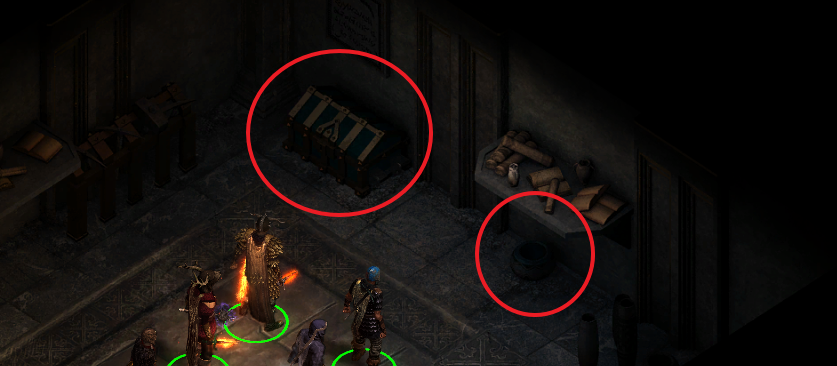 떠나기 전에 탁자와 상자에서 아이템을 챙겨가자.