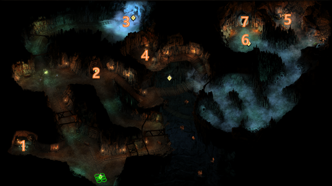 지도 상 동쪽 윗 편에는 혼란스러운 광부들과 상자가 하나 있다.