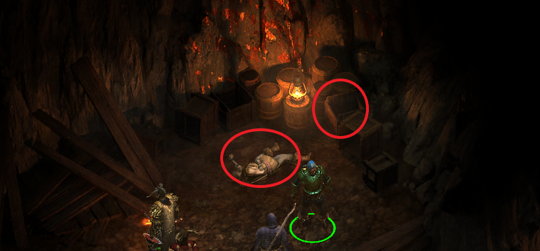 적들 처치 후 중앙 부근에 가보면 쓰러진 시체와 나무상자에서 아이템을 챙길 수 있다.