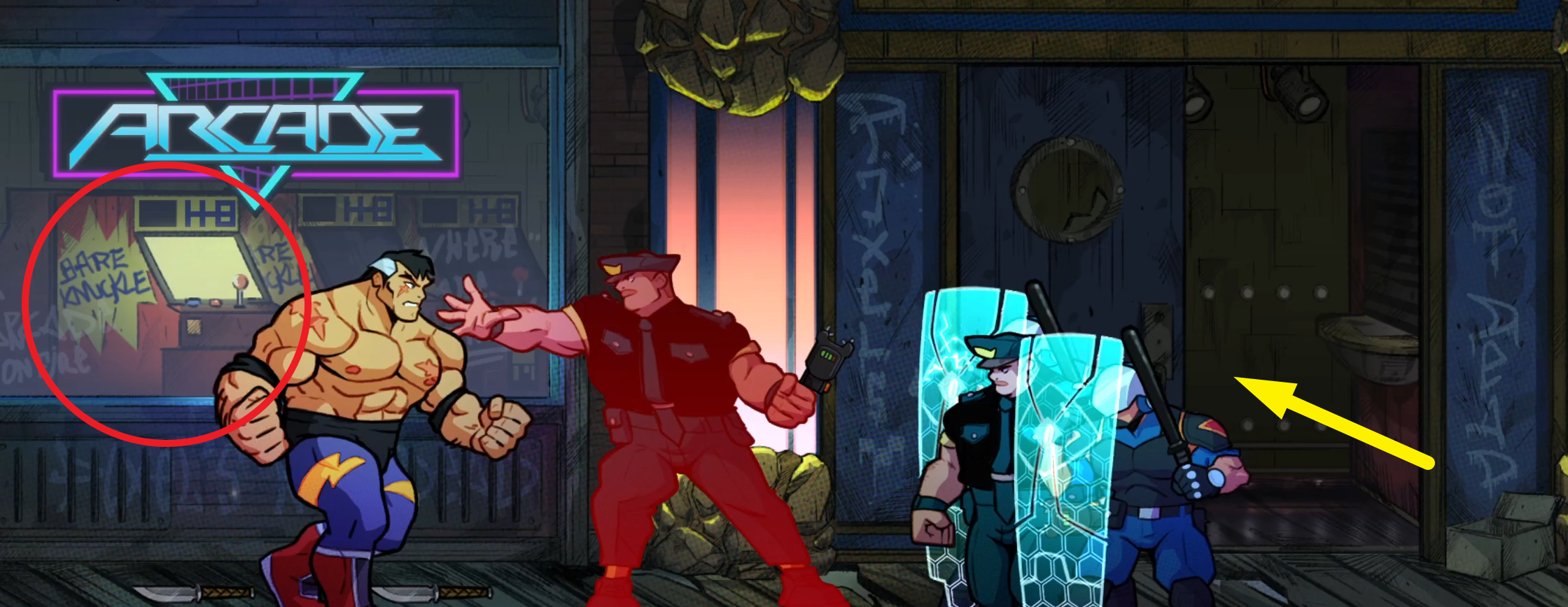 스테이지 4에서도 마찬가지로 전기 충격기를 든 경찰들을 발견할 수 있다.