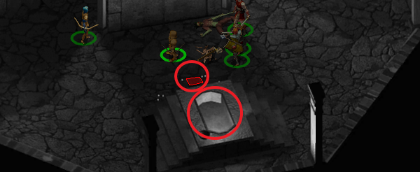 해당 석관을 클릭하면 무의식에 걸리는 주문이 시전되고 적들이 나타나 공격을 해온다.