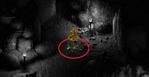 그리고 아래쪽 부근에서 사람 시체 1구를 발견할 수 있다.