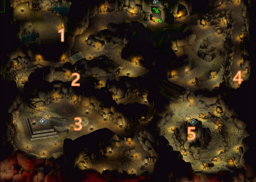 왼쪽 아랫편에는 탈로나의 사제들과 트롤들이 대기하고 있다.