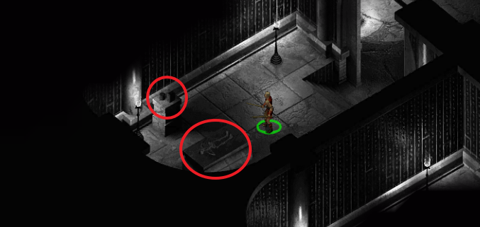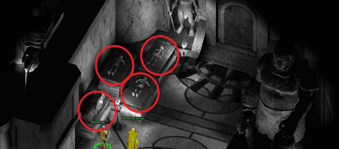 오른쪽 아래에서 3번째 묘실에는 석관이 있고 근처 바닥에 함정이 있으니 주의하자.