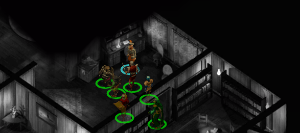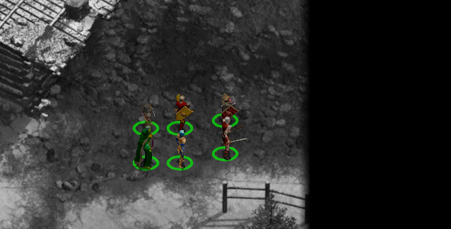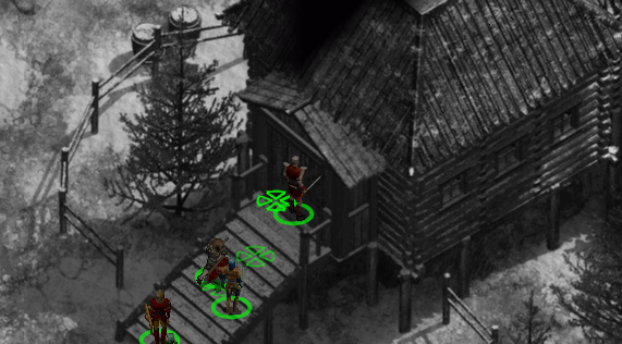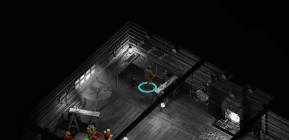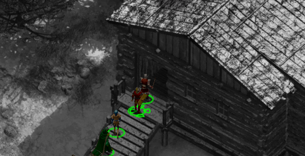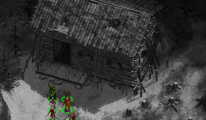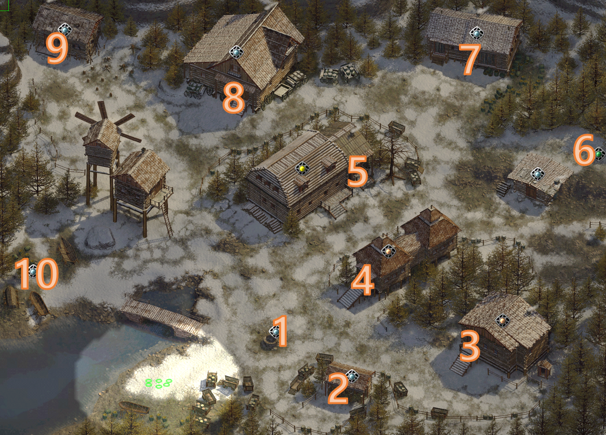 왼쪽 가장 위편에는 덫 사냥꾼의 오두막이 있고 근처에 3명의 사냥꾼이 있다.