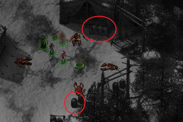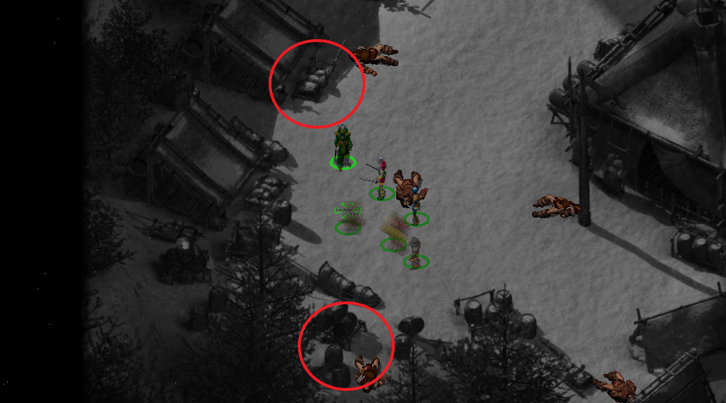 지도 상 우측에 보이는 나무통 두 곳에는 마법 아이템이 들어있다.