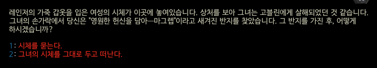 ※ 시체 살짝 왼쪽이나 오른쪽을 클릭하면 다음 다이얼로그가 발생한다.