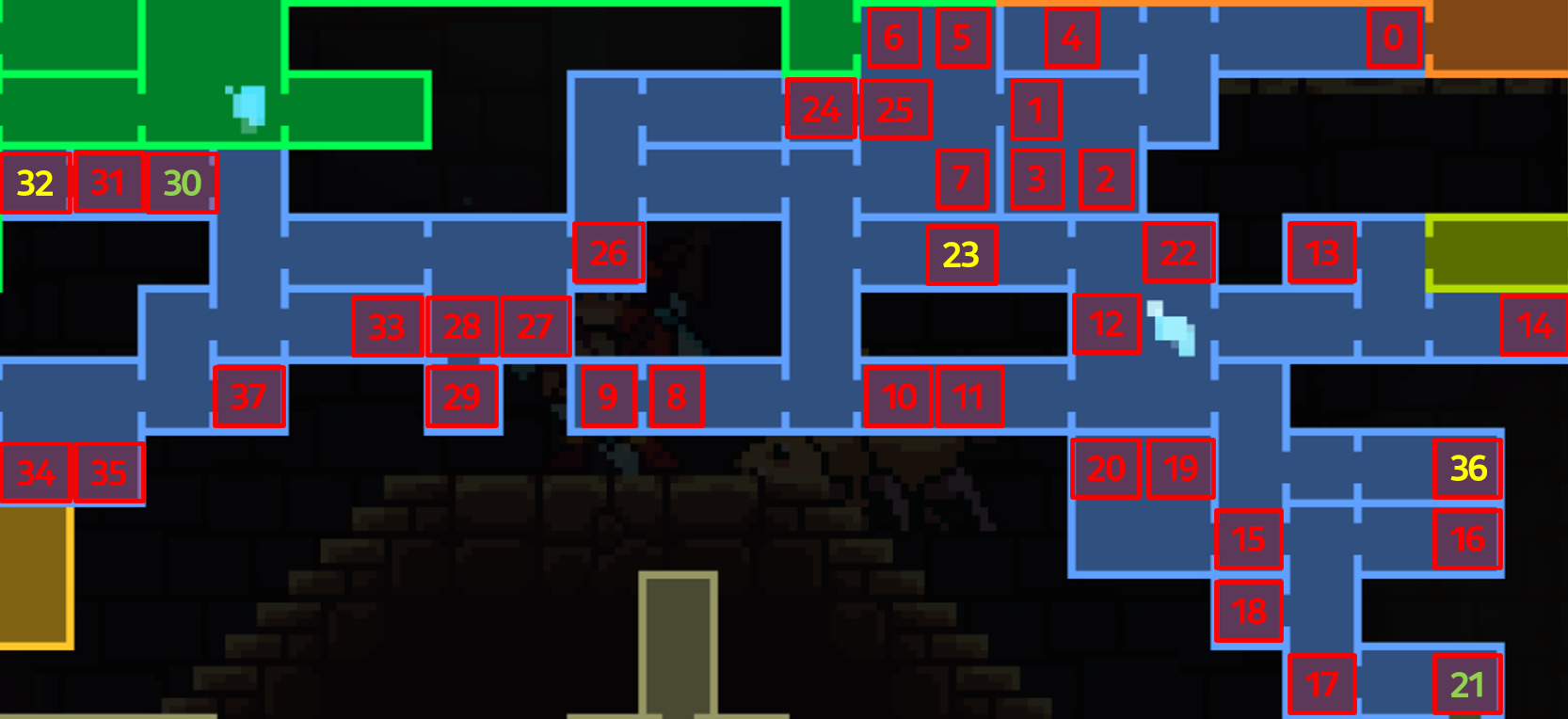 15번 위치에서 왼쪽으로 가면 2단 점프를 통해서만 가야할 수 있는 구역이 나온다.