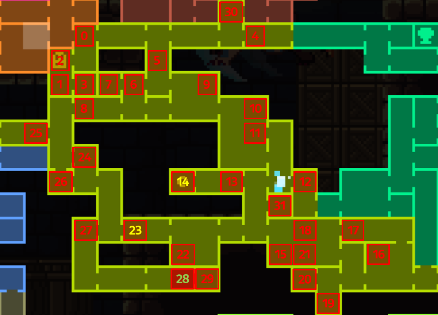 18번 위치에서 열소로 문을 연뒤 왼쪽 방면으로 떨어지면 아래 상자가 있는 곳에 갈 수 있다.