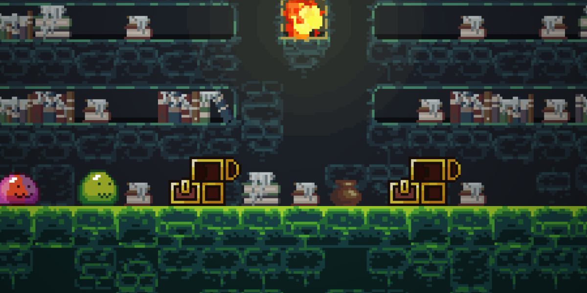 몬스터로 부술때마다 계단식으로 벽이 부숴지며 상자에 다음 아이템이 들어 있다.